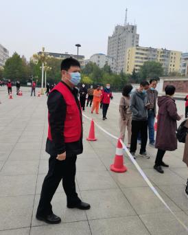 (市科技局领导班子在中心广场社区帮助维护秩序)