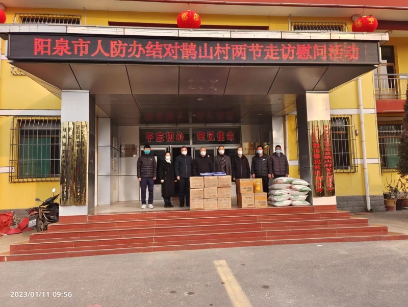 1月11日,市人防办副主任魏小宝、二级调研员史党生等一行四人,到结对帮扶的平定县冠山镇鹊山村开展春节前走访慰问活动。
