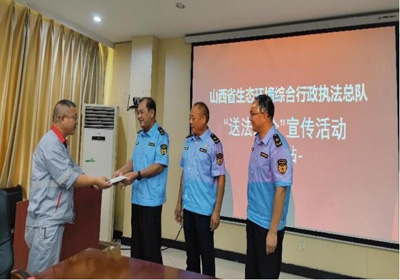 此次活动重点关注企业经营管理中生态环境保护方面存在的难点和漏洞,从环境执法的角度为企业普法宣传、答疑解惑、纾困解难。省生态环境综合行政执法总队主要聚焦企业在常见环境违法行为和可能涉及的环境污染行为热点问题、行政处罚自由裁量等方面的法律需求,以环境违法行为、环境犯罪红线的政策标准模糊的常见风险点为切入口,引用典型案例,以案释法,用通俗易懂的家常话解读案例背后的环境风险和法律责任,逐一罗列潜在问题,并有针对性地提出合理化建议。同时,还为参加活动的企业免费发放《山西省生态环境送法入企宣传册》百余本,并与参加活动的企业负责人进行业务宣讲、交流座谈,解答在生产经营中遇到的环保法律问题。