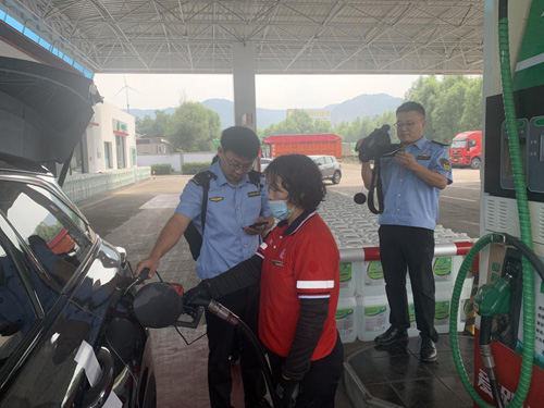 9月13日,执法人员对盂县某加油站开展了现场帮扶。在检查的过程中,执法人员利用红外热成像仪、FID检测仪等高科技手段迅速定位,发现其厂区内的油气存在漏气现象。针对于此,执法人员及时联系第三方专业技术人员进行现场监测,并有针对性的提出整改建议。为了提高效率,执法人员分工明确,看资料的看资料,看现场的看现场,对现场监测溯源,拍照留证,电脑手机录入等相关工作各负其责。他们深入厂房一线,对相关工段进行了深入细致的帮扶检查,对在线监测设施运行情况进行了现场督导。