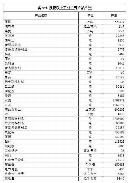 规模以上工业主要产品产量详见表3-4。