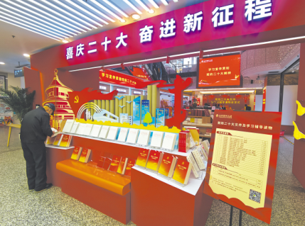 陕西 连日来,党的二十大文件及学习辅导读物在陕西省各地新华书店陆续上架。全省各地新华书店第一时间在核心位置设置展台,并主动开展送书上门服务和线上征订业务,大力推进全渠道、全覆盖发行,把党的二十大文件及学习辅导读物及时送到党员干部群众手中。