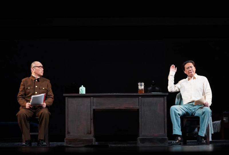 删繁就简,领异标新。话剧《香山之夜》仅用一桌二椅和两位演员的舞台呈现,就实现了与观众在情感上的同频共振。摒弃恢弘的舞美灯光和磅礴激昂的配乐,《香山之夜》充分利用戏剧舞台的假定性,通过艺术想象,让同一时间、不同空间的两位历史人物进行语言、思想和理想信念的激烈交锋,从而让观众思考中国共产党为什么能走到今天并不断发展壮大,同时感悟新时代的使命担当。“不做历史的重现者,但做历史的讲述者和当代的思考者”是主创团队对这一创新的诠释。在《香山之夜》中饰演毛泽东的演员王斑认为,一定不能将表演和观众割裂,而要通过情绪的感染和持续的互动,让观众成为舞台上展示的历史的见证者和参与者。