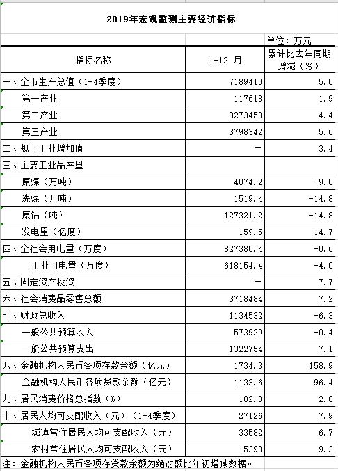 2019年宏观监测主要经济指标
