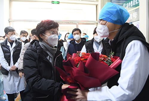 随后,雷健坤深入我市部分医疗机构、商超、企业调研慰问,将新春祝福送到了一线职工的心坎上。“现在每天急诊就诊量有多少”“你们要注意劳逸结合,加强自我防护”……在市第一人民医院急诊大厅,雷健坤详细了解医疗救治、人员配备等情况,她动情地说,抗击疫情三年来,广大医务人员始终坚守和奔走在人民最需要的地方,付出最多、辛劳最多,感谢大家为疫情防控和医疗卫生事业作出的贡献。当前,疫情防控进入了新阶段,医院承担的任务更为繁重。希望大家不忘初心、牢记使命,持续提高医疗救治水平,守护好群众的生命安全和身体健康。各级党委政府要加大对医护人员的关心关爱,为他们排忧解难、传递更多温暖和力量。