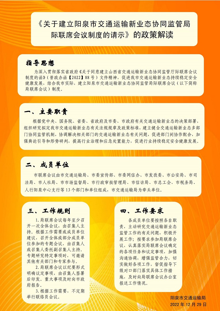 关于同意建立阳泉市交通运输新业态协同监管局际联席会议制度的函(阳政办函〔2023〕2号)的解读